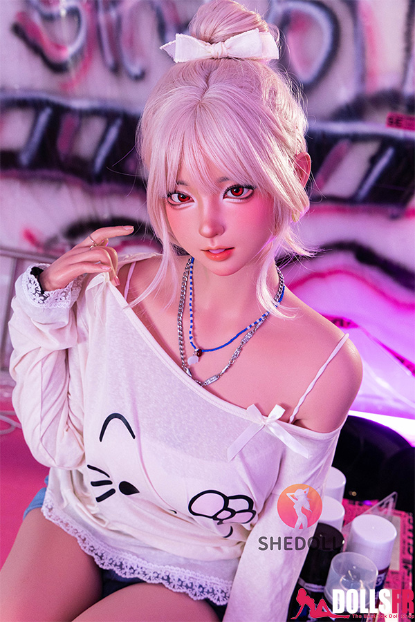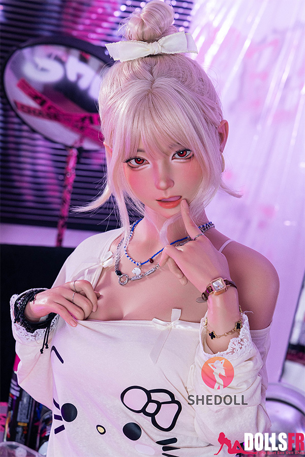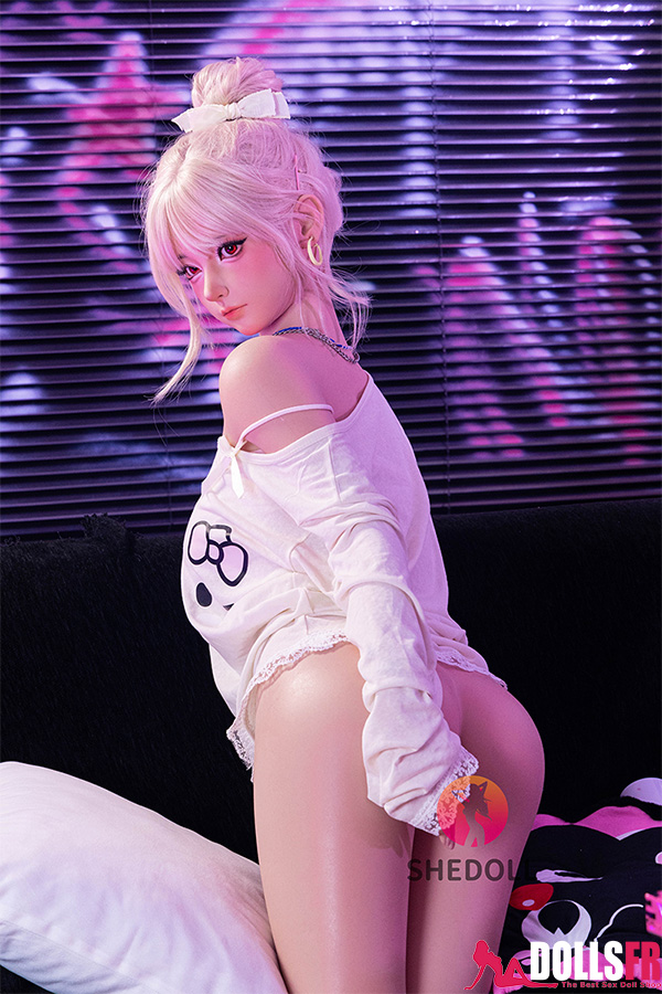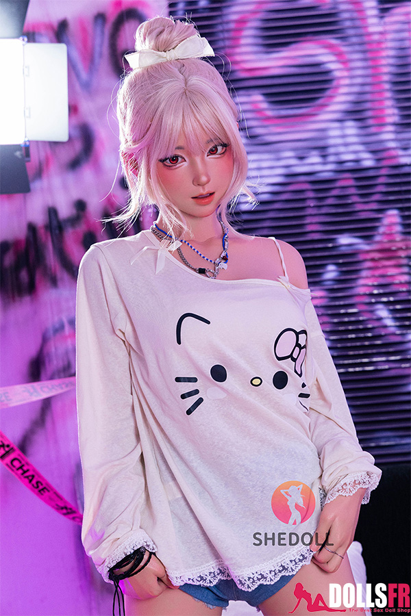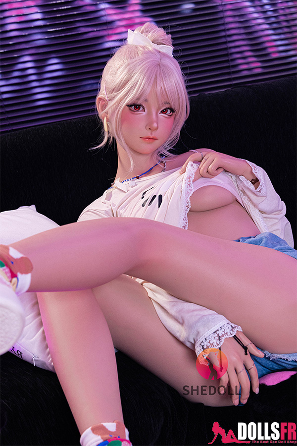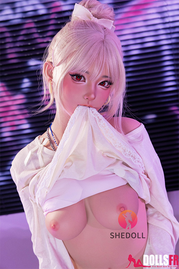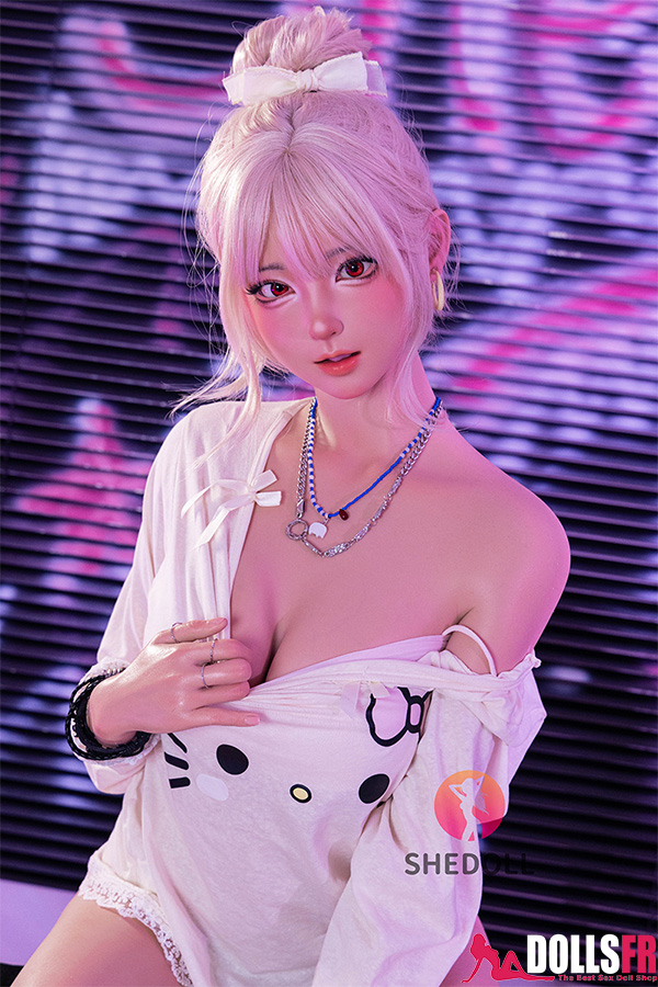 Avec ses cheveux argentés relevés en chignon et ses lentilles rouges éclatantes, cette jeune femme affiche un look de véritable bad girl. Un maquillage audacieux souligne ses traits expressifs, tandis qu’un t-shirt blanc à épaules dénudées laisse deviner subtilement la sensualité de ses formes. Le tissu léger, presque translucide, contraste avec un mini short en jean à peine visible sous le t-shirt — une tenue à la fois provocante et stylée. La poupée sexuelle mignonne a une expression séduisante, se déshabille et ouvre ses jambes pour tu inviter. Elle sera ta meilleure partenaire sexuelle.