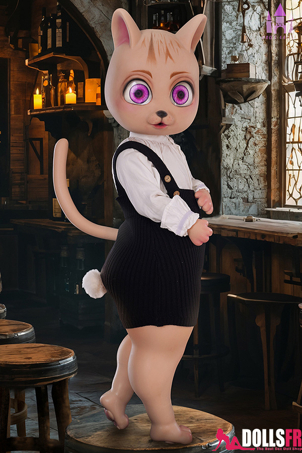 C’est un chat sans poils… mais ce n’est pas une simple nekomimi. Cette poupée sexuelle manga possède six petits seins, alignés soigneusement de la poitrine au bas-ventre, comme une créature encore inconnue. Chacun d’eux est tendre, rond, avec un léger rose qui donne l’impression qu’ils respirent sous vos doigts. Ses coussinets sont épais et moelleux — on dirait les pattes d’un vrai félin. Sa queue courbe doucement au-dessus de ses fesses rebondies. Sans fourrure, son corps nu brille doucement, comme une œuvre sortie tout juste du moule.