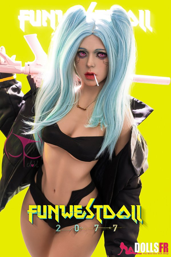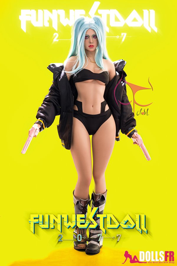 Cette femme très cyberpunk est Rebecca Sex Doll, un personnage de l'anime Cyberpunk : Edgerunners. Elle est la flingueuse de l'équipe, une petite aguerrie, armée d'armes à feu, qui semble excentrique et se soucie de ses coéquipiers. Cette poupée sexuelle anime a de longs cheveux bleus attachés en deux nattes et ses yeux violets sont vifs et perçants. Elle porte un pistolet rose sur son épaule et une sucette dans la bouche, pleine de vitalité et ne se laisse pas abattre par les défis de la vie. Sa lingerie noire est particulièrement séduisante et elle vous fera vivre une merveilleuse expérience comme une vraie personne. Ne sous-estimez pas la douceur de la poupée sexuelle en TPE, elle vous surprendra sûrement.