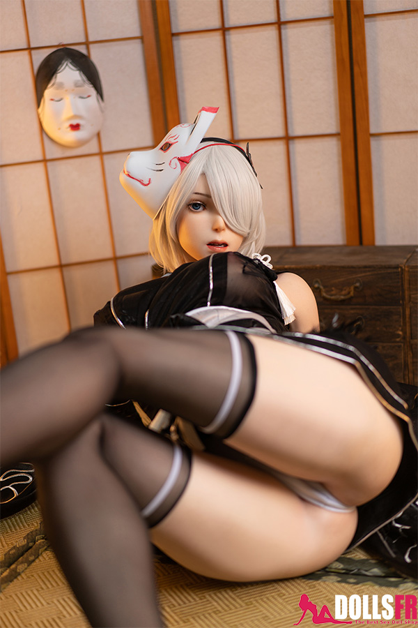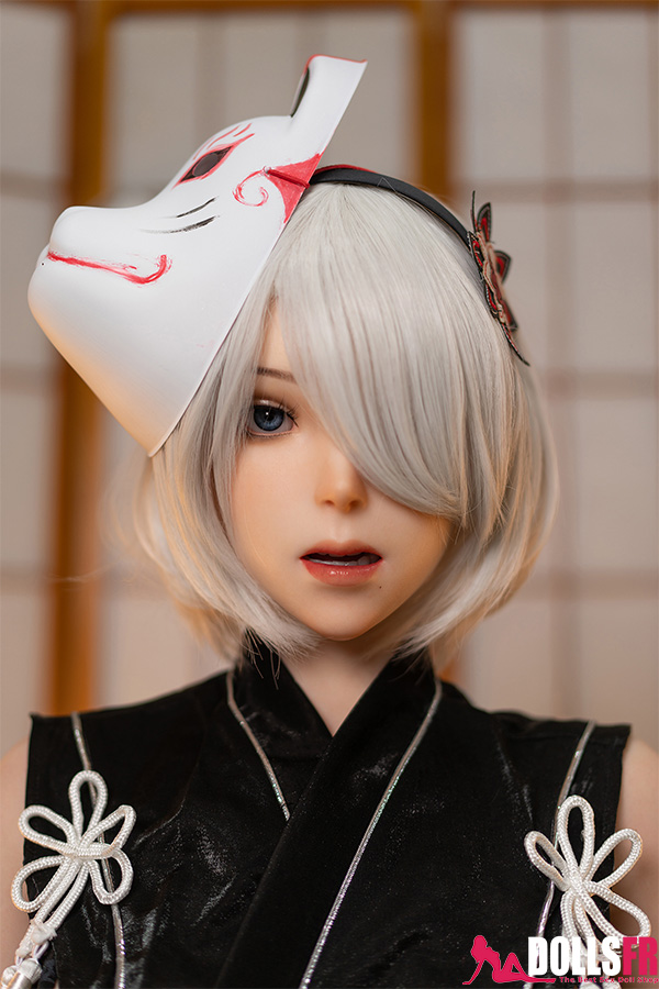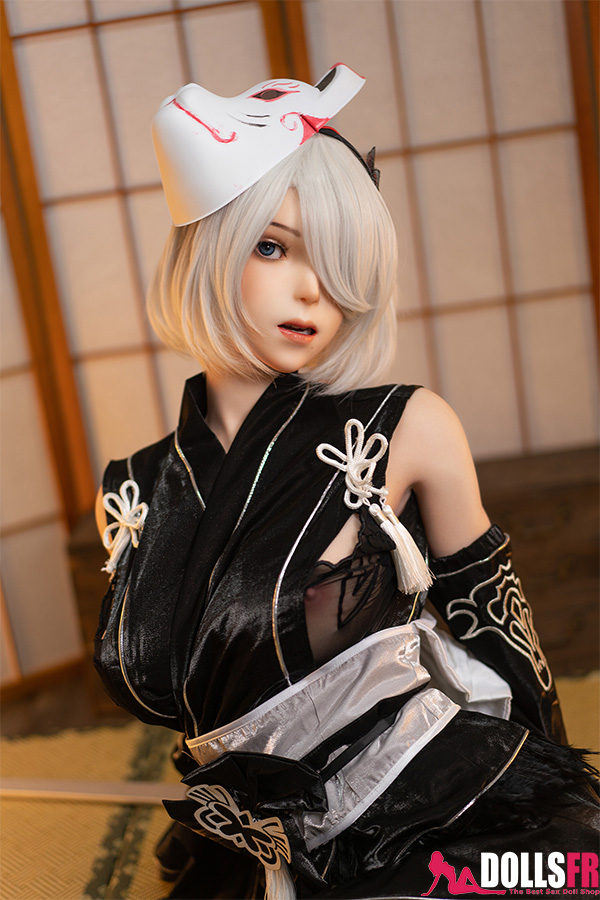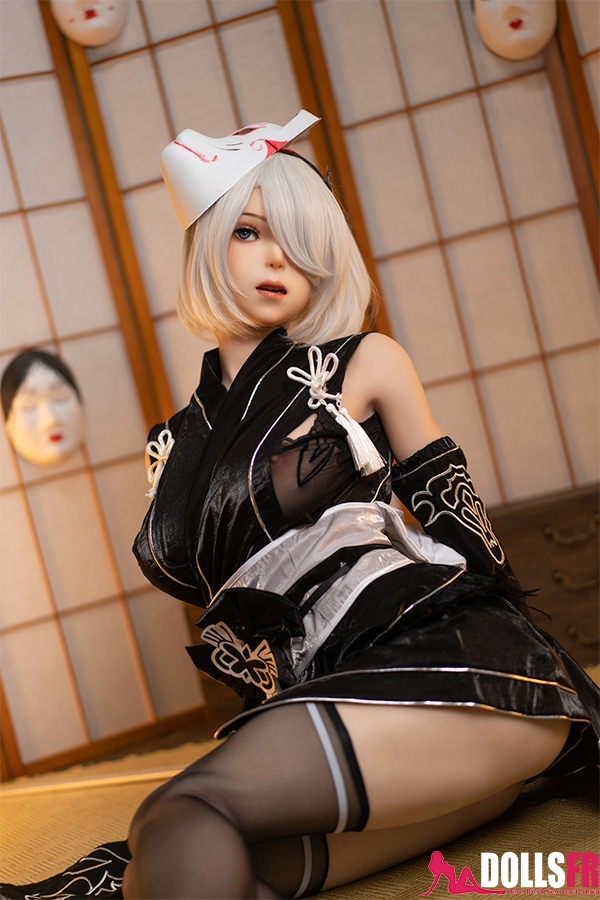 L’unité de combat humanoïde No.2 Type B de NieR: Automata est connue pour sa froideur légendaire, son visage impassible et sa silhouette élancée. Mais la voici dans un tout autre registre : vêtue d’un kimono noir, la grande poupée sexuelle 2B laisse entrevoir une douceur nouvelle. Ses cheveux argentés coupés au carré couvrent toujours un œil, et ses longues jambes sont soulignées par ses bas noirs. Le masque de renard sur sa tête lui donne l’allure d’une jeune fille en route pour un festival japonais. Désarmée, elle n’oppose plus aucune résistance — elle t’appartient entièrement. Avec ses 171 cm de hauteur et son généreux bonnet G, elle offre un plaisir visuel saisissant. Entièrement conçue en silicone de qualité, elle promet une expérience d’un réalisme troublant.