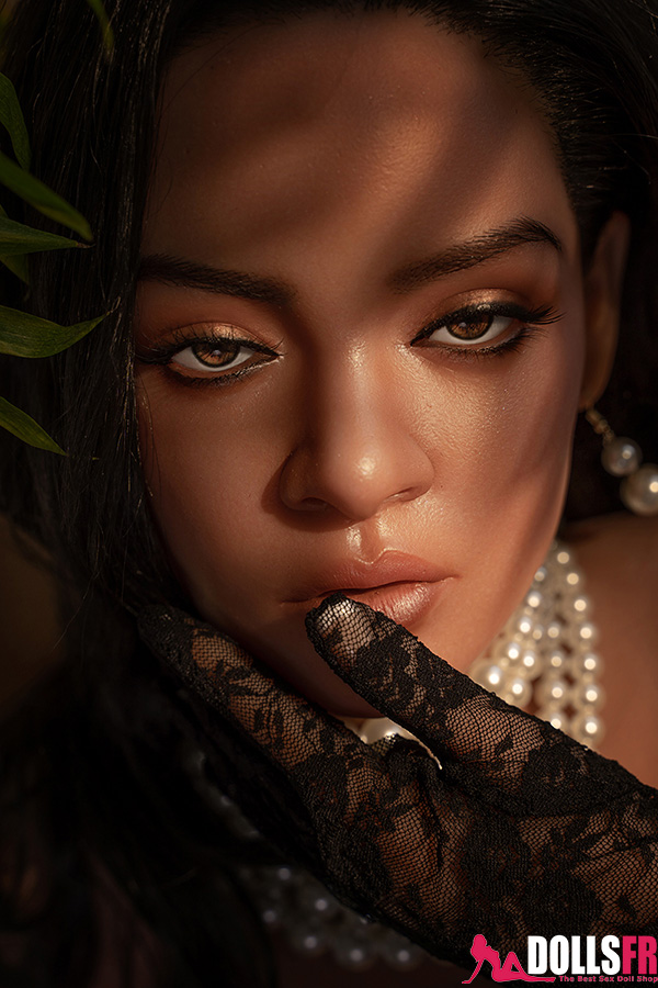 Le maquillage, exécuté avec une précision d’artiste — regard travaillé aux coins légèrement relevés, lèvres laquées d’un rouge vibrant — compose une aura à la fois souveraine et magnétique. Alliance d’assurance et de raffinement, cette poupée sexuelle noir séduit par une douceur de peau souple et réaliste, conçue pour combler les attentes de ceux qui aiment les courbes majestueuses.