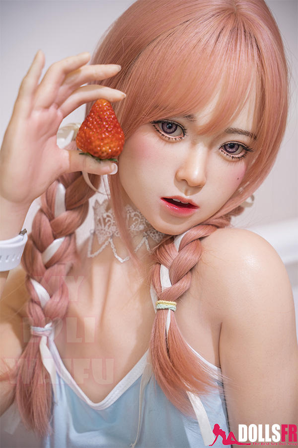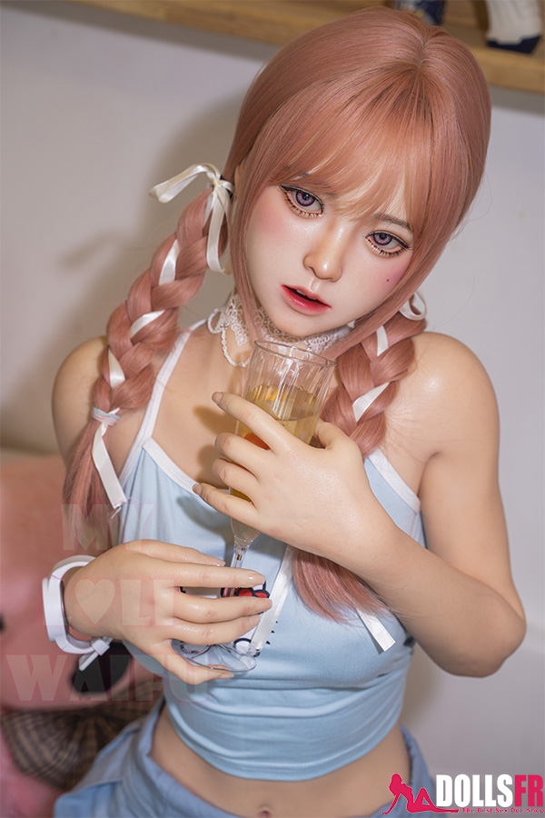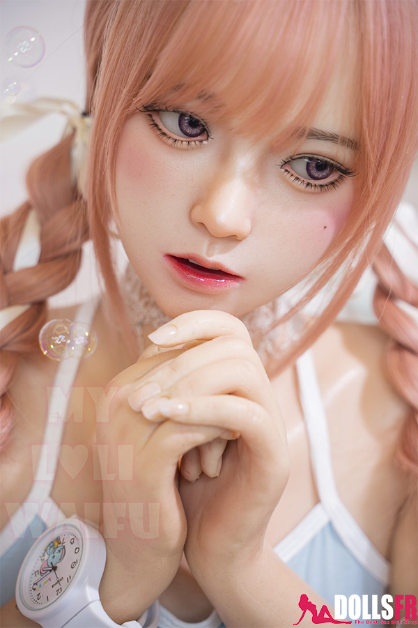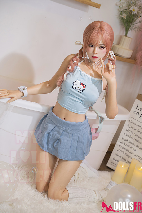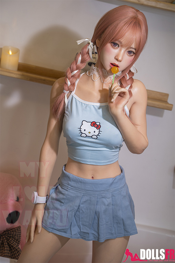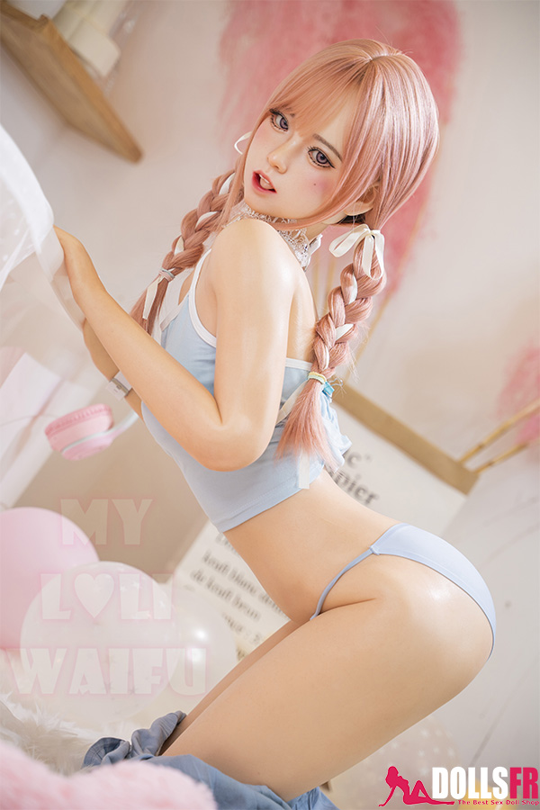Ses cheveux longs et roses sont soigneusement tressés en deux magnifiques nattes, reliées au centre par des rubans blancs entrelacés qui ajoutent une touche de finesse et de fantaisie. Ses yeux aux nuances de rose et de violet captent la lumière, tandis qu’une petite marque au coin de l’œil lui donne un charme unique et subtil. Son visage délicat et mignon reflète une innocence douce, complétée par une silhouette fine et élancée avec une poitrine menue. Elle porte un petit haut bleu à fines bretelles et un shorty assorti, soulignant sa fraîcheur et sa sensualité discrète. Au cœur de ces détails, cette teen real doll combine esthétique kawaii et réalisme : sa peau est blanche et douce, son corps souple et flexible, offrant une expérience tactile et visuelle extrêmement satisfaisante.