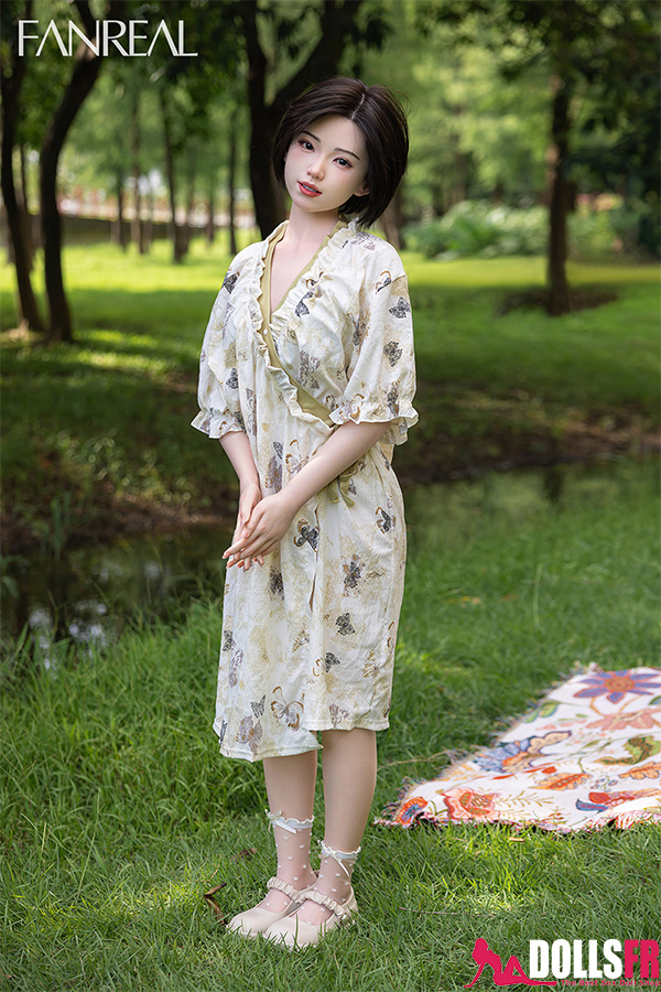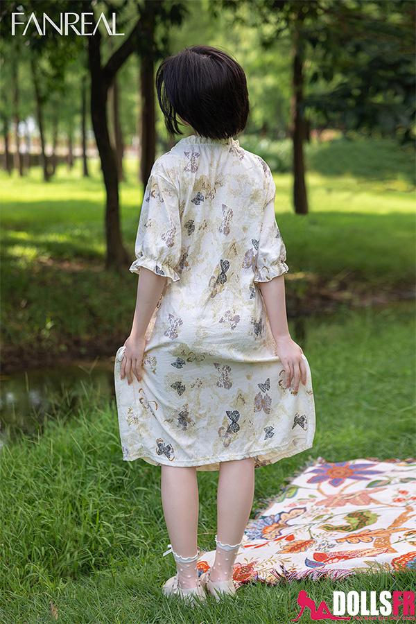 Sa robe superposée, blanche avec de fines fleurs vertes, se marie parfaitement avec son style naturel et raffiné. Ni trop tape-à-l'œil, ni trop sobre, la jeune sexdoll incarne l’élégance discrète. Sa silhouette fine est délicatement dessinée, laissant deviner des courbes douces et naturelles. Le réalisme va jusqu’aux moindres détails : des finitions soignées, un teint clair, et une expressivité touchante. Sa bouche, légèrement entrouverte, permet une interaction discrète et réaliste, conçue pour offrir plus qu'une simple présence décorative.