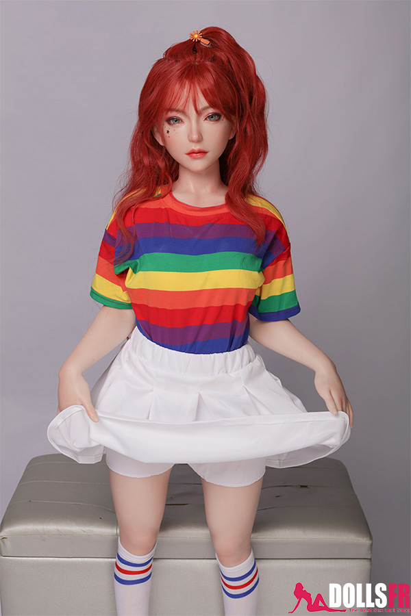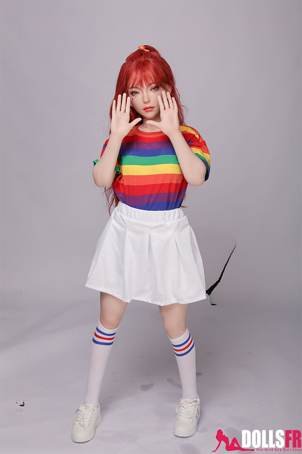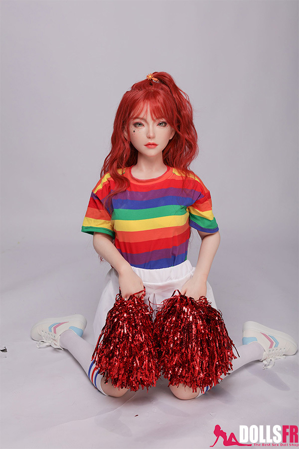 Ses longs cheveux roux flamboyants et ses yeux verts pétillants lui donnent un charme résolument moderne et audacieux. Avec son corps de 130 cm et sa poitrine A-Cup délicate, elle séduit par une silhouette jeune et élancée. Son visage orné de motifs décoratifs attire immédiatement le regard, soulignant son allure unique et festive. En véritable star de l’équipe, cette young real doll incarne l’énergie d’une pom-pom girl tendance, vêtue d’un haut rayé arc-en-ciel et d’une mini-jupe blanche qui la rendent encore plus dynamique. Ses chaussettes de sport blanches montantes et ses pompons de cheerleading complètent l’ensemble avec style. Sa peau claire et soyeuse apporte la touche finale de réalisme et de raffinement.