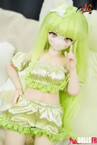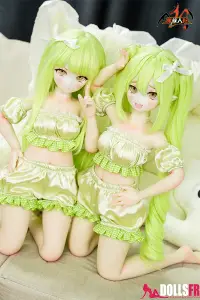 Inspirée de Tachibana Hikari, cette poupée sexuelle cosplay adopte une apparence fantaisiste et mignonne : les cheveux sont coiffés en doubles couettes, accompagnés de petites oreilles d’elfe qui ajoutent une touche féerique. Ses grands yeux verts brillent d’éclat, tandis que son visage aux traits doux garde le charme des personnages animés. Le corps est petit et fin, avec une poitrine plate qui renforce son côté espiègle et adolescent. Elle porte un haut bustier vert et un mini-short assorti, un style simple mais plein de vivacité. Fabriquée en TPE de qualité, la matière offre une douceur réaliste tout en restant à un prix abordable.