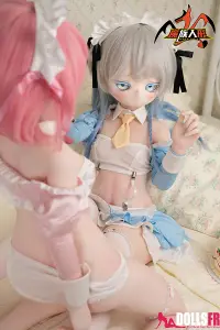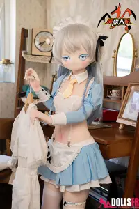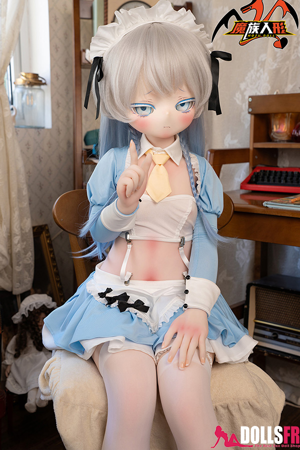 Ses longs cheveux argentés se fondent naturellement en bleu, terminés par deux petites tresses fines, ajoutant une touche espiègle à son apparence. Ses pupilles argentées brillent sous la lumière, tandis que ses cils blancs et son eye-liner bleu accentuent un visage de style animé, à la fois mignon et mystérieux. Cette sex doll met une tenue de soubrette bleue de style érotique, accompagnée de bas blancs qui épousent ses jambes fines, mettant en valeur sa petite poitrine et sa peau claire. Chaque détail, de la couleur dégradée des cheveux au maquillage des yeux, ainsi que la conception de ses vêtements, est soigné et empreint de fantaisie, comme sortie directement d’un univers animé. La poupée sexuelle pas cher combine un réalisme tactile et une apparence très fidèle, tout en restant abordable pour les collectionneurs et les passionnés.