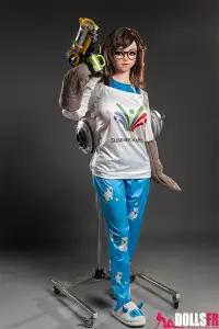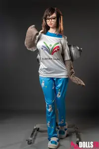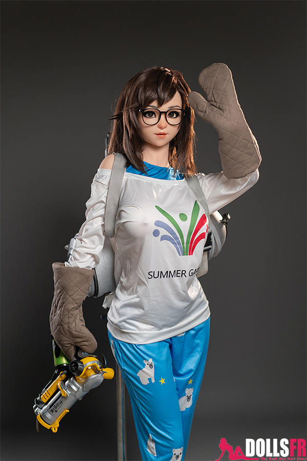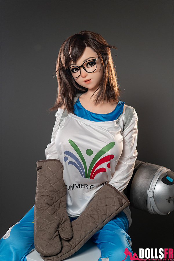 Mei tout droit sortie d’Overwatch, mais en version que tu peux toucher : 165 cm de douceur ronde, avec ce bonnet G-Cup qui remplit le haut du costume bleu-blanc comme dans le jeu. Le visage est fidèle à mort – lunettes rondes, sourire timide, petites joues rosées – et les cheveux bruns attachés en couettes donnent vraiment l’impression qu’elle va te sortir une blague sur la glace d’une seconde à l’autre. Le corps est tout en courbes : ventre un peu rondouillet, hanches larges, cuisses épaisses qui donnent envie de les serrer, et cette peau silicone qui chauffe vite et colle légèrement aux doigts quand tu glisses la main sous la jupe. Elle est pas trop lourde, tu la soulèves facilement pour la mettre sur les genoux ou contre le mur, et elle se laisse poser dans des attitudes adorables – assise avec les jambes croisées comme si elle faisait une pause, penchée en avant pour montrer le décolleté, ou juste blottie contre toi avec son petit air innocent. Si tu kiffes les cosplay sex doll tirées de jeux avec ce côté geek et voluptueux, Mei va te rendre accro grave. Une petite scientifique chinoise qui attend juste que tu viennes la réchauffer… et qui sait très bien comment te faire fondre avec son sourire timide et ses formes généreuses