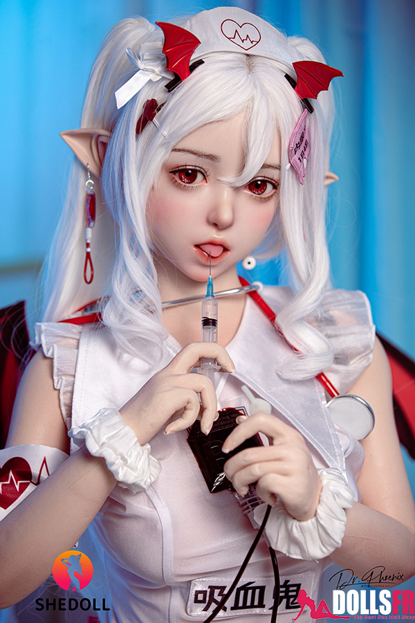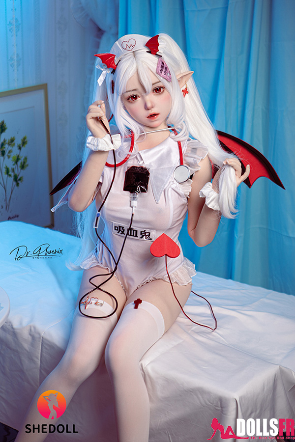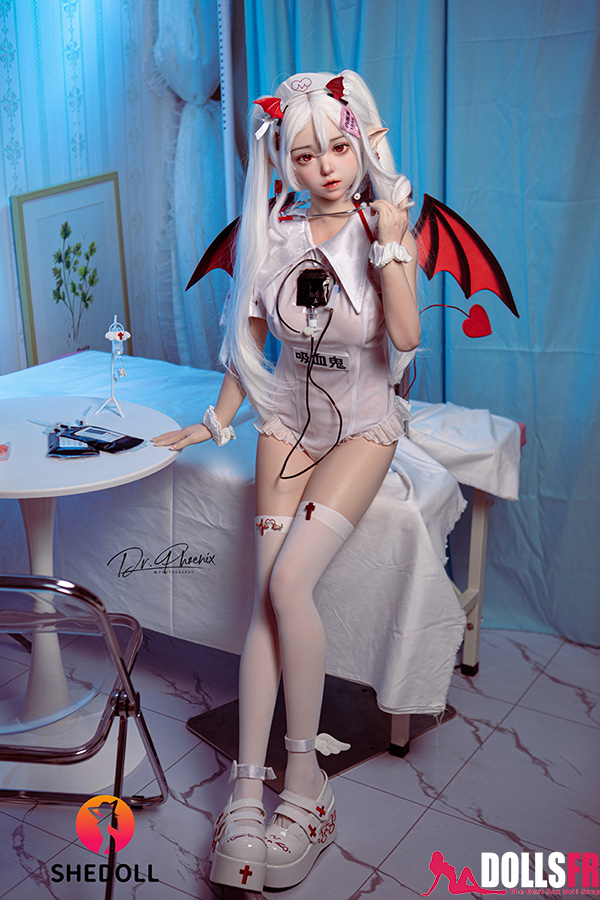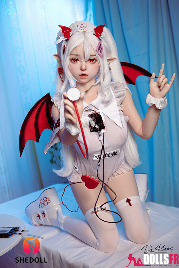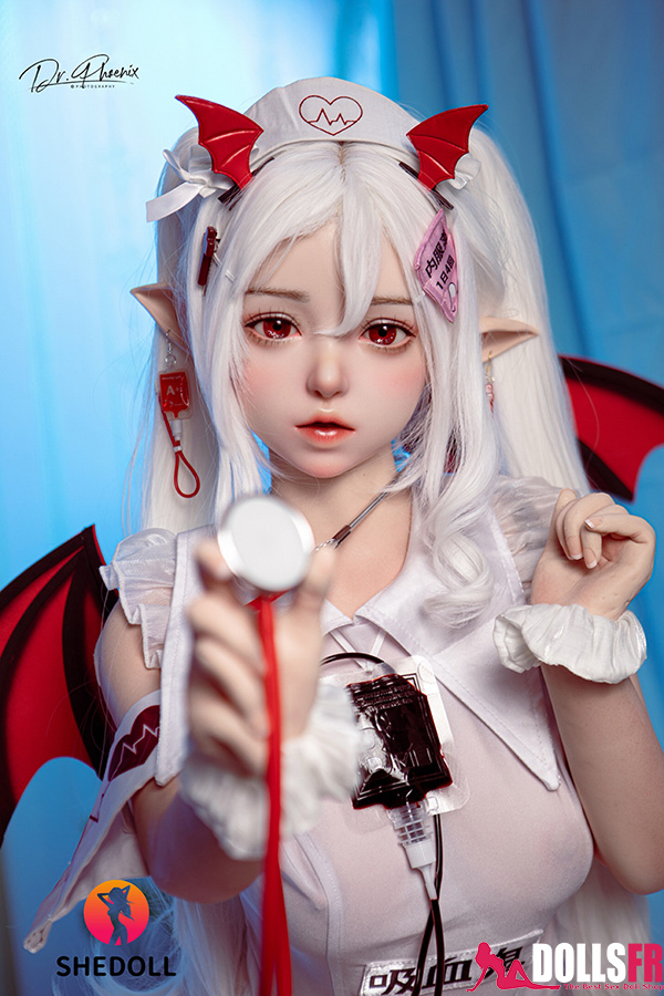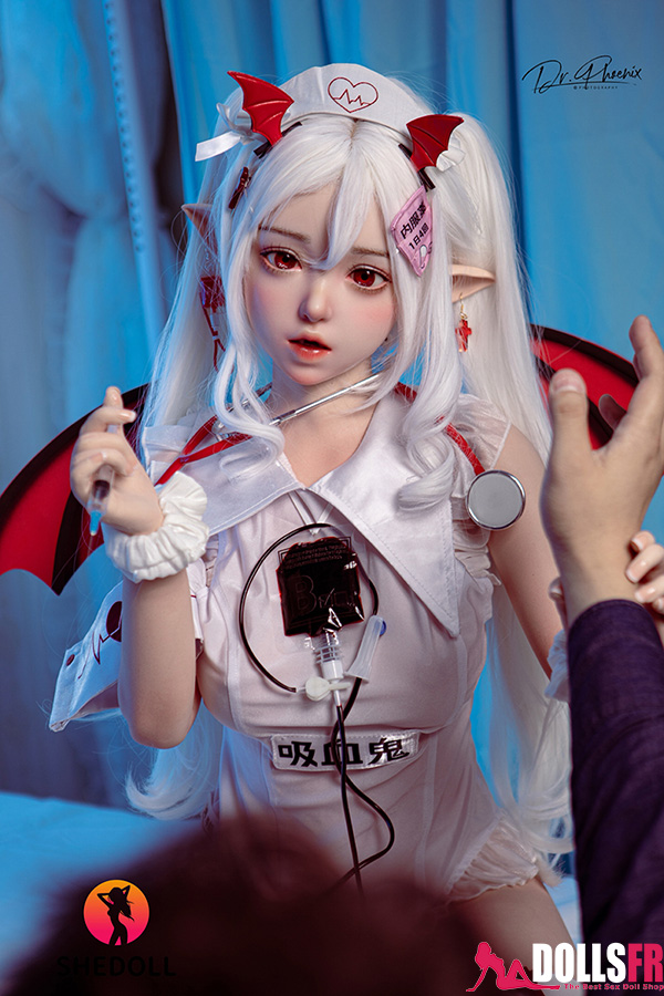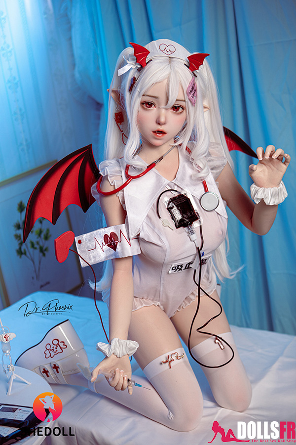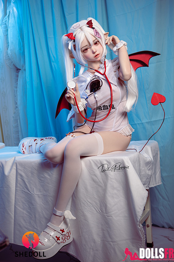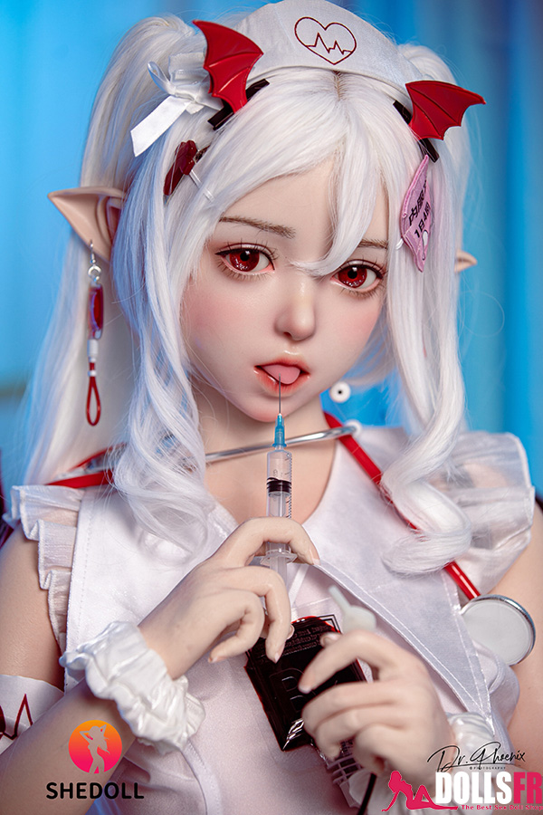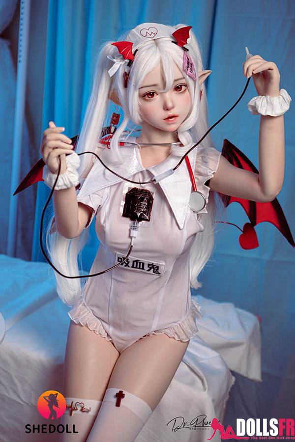 Sur sa tête, un bonnet d’infirmière et une petite barrette démoniaque ajoutent un charme coquin, tandis que son sourire séducteur et son regard pénétrant captivent immédiatement. La medium breasts sexdoll possède de longs cheveux blancs attachés en deux couettes espiègles, avec des oreilles d’elfe légèrement dressées qui révèlent une aura surnaturelle. Ses petites ailes de démon à l’arrière et sa queue frétillante accentuent encore son côté espiègle et provocateur.