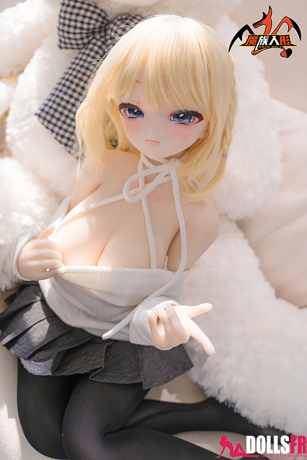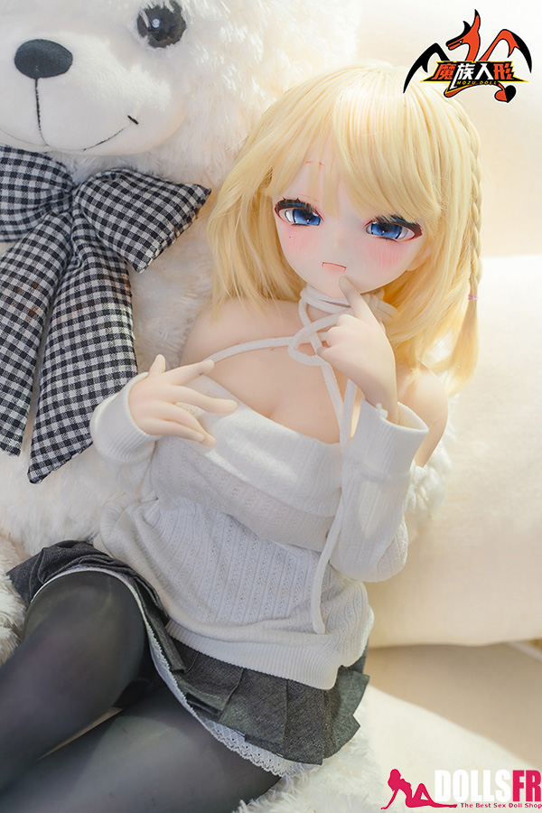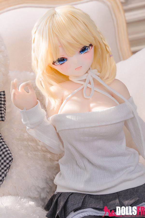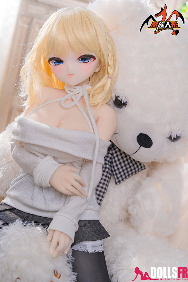 Cette mini love doll de 85CM combine un charme résolument animé avec une apparence douce et séduisante. Ses longs cheveux blonds encadrent son visage délicat aux grands yeux bleus, donnant vie à un style très « manga ». Elle porte un pull gris moelleux et des bas noirs élégants, créant un contraste parfait avec sa peau claire. La poupée, disponible en TPE ou silicone avec une tête en Soft Vinyl, est installée confortablement contre un énorme ours blanc, accentuant sa posture adorable et réaliste. Les détails soigneusement sculptés, des traits du visage à la douceur du corps, offrent une expérience visuelle et esthétique très agréable, idéale pour la collection et l’exposition.