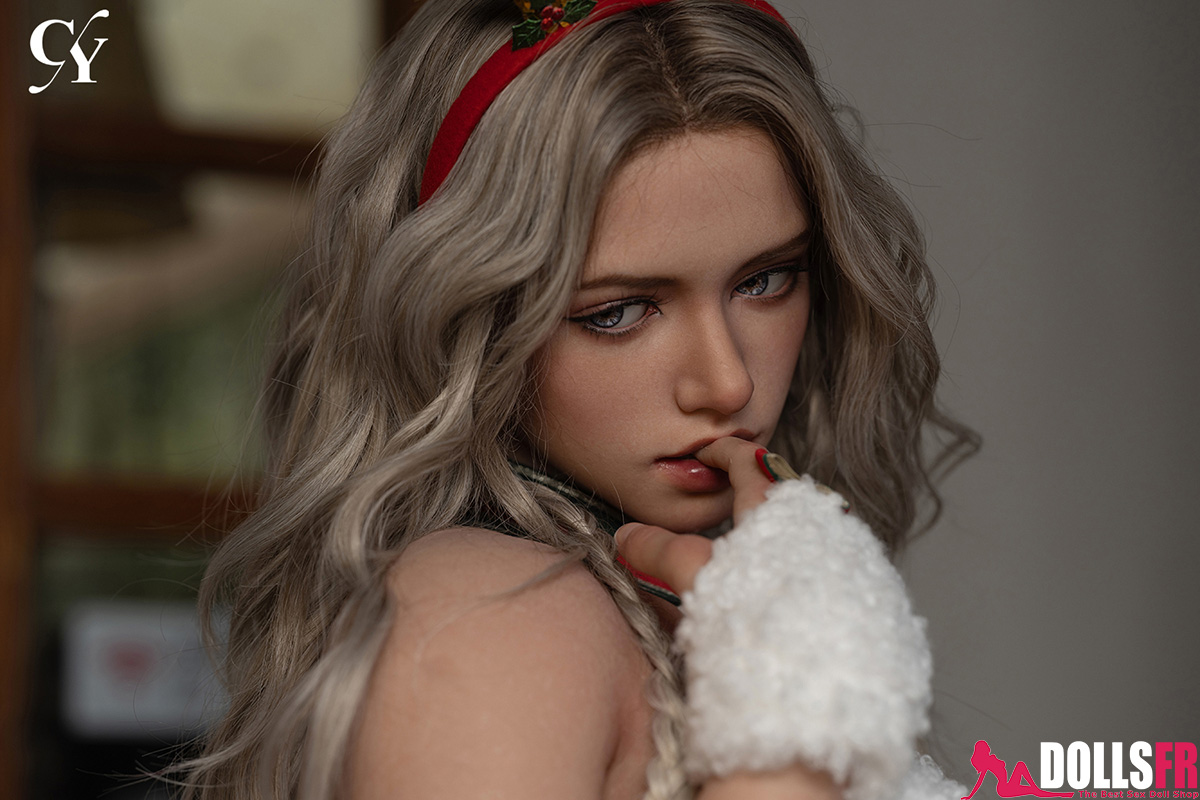 Sa longue chevelure argentée brille doucement à la lueur des flammes, sublimant une silhouette élancée qui se dévoile à travers deux tenues festives. La première, espiègle et sensuelle, associe un bonnet de Noël à de fins rubans rouges enroulés autour de son corps comme un cadeau prêt à être ouvert. La seconde, plus envoûtante, marie un serre-tête à bois de renne avec une lingerie blanche aux accents de Noël, dans une cabane tamisée où le feu de cheminée et les cadeaux créent une atmosphère intime. Grâce à son réalisme saisissant et à sa finition soignée, cette poupée sexuelle blonde incarne parfaitement l’esprit de fête et le désir.
