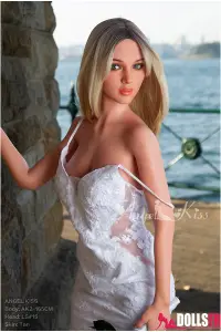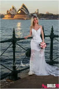 Sous la lumière douce du crépuscule, la maigre real doll se tient sur le promontoire d’un phare au bord de la mer, portant une robe de mariée blanche fluide qui flotte légèrement dans le vent marin. Sa chevelure mi-longue dorée encadre son visage délicat, tandis qu’elle serre dans ses mains un bouquet de fleurs fraîches, ajoutant une touche romantique à la scène. Sa peau légèrement hâlée donne un aspect sain et réaliste, accentuant l’impression de vie et de naturel. L’ensemble dégage une atmosphère poétique et immersive, comme si la mariée venait tout droit d’un conte de fées au bord de l’océan.