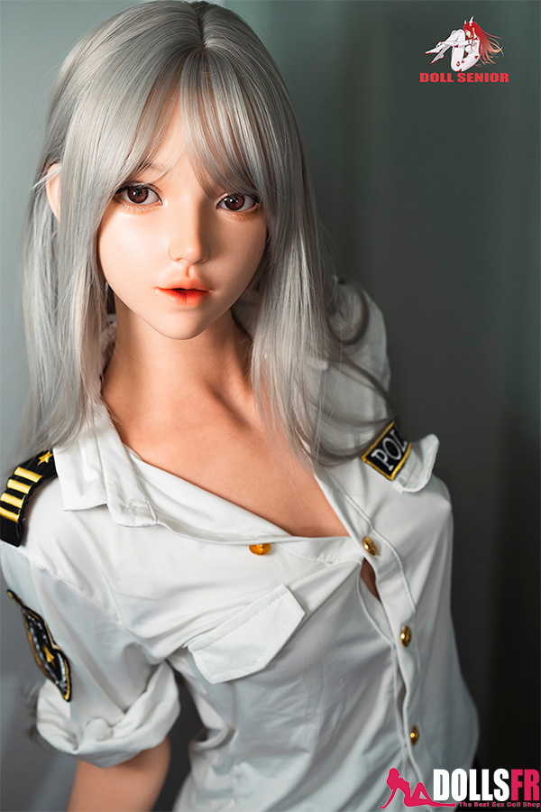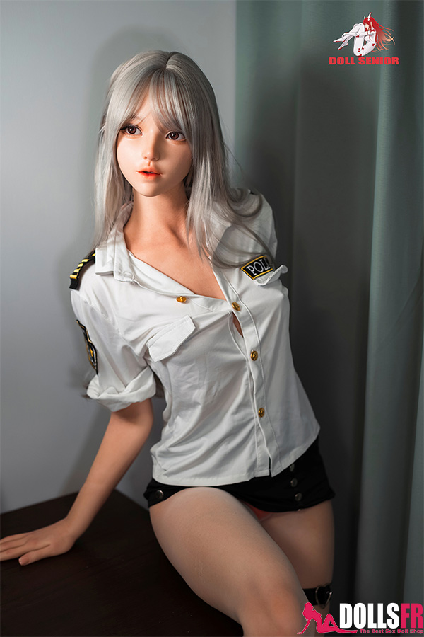 Elle arbore une longue chevelure argentée qui tombe délicatement sur ses épaules, encadrant un visage mignon et expressif au regard captivant. Vêtue d’un uniforme de police stylisé, cette real doll porte une chemise blanche ajustée qui souligne sa silhouette élancée et une mini-jupe noire très courte qui accentue ses courbes harmonieuses. Chaque détail du corps a été soigneusement conçu, du buste proportionné aux mains et doigts délicatement sculptés, avec une peau douce au toucher qui reproduit la sensation réaliste du contact humain. Son allure combine autorité et charme, donnant l’impression que la teen sex doll pourrait sortir tout droit d’un univers animé ou d’un jeu vidéo, tout en restant extrêmement séduisante et réaliste. Les proportions sont équilibrées, le corps fluide et agréable à manipuler, ce qui offre une expérience immersive à la fois visuelle et tactile.