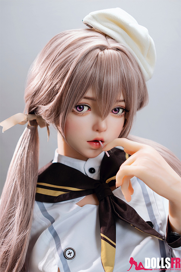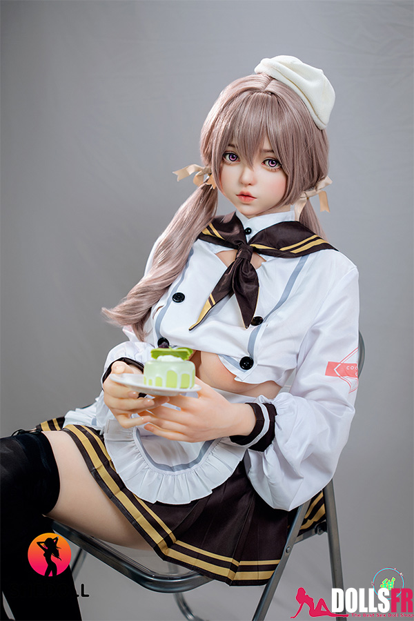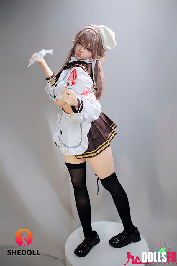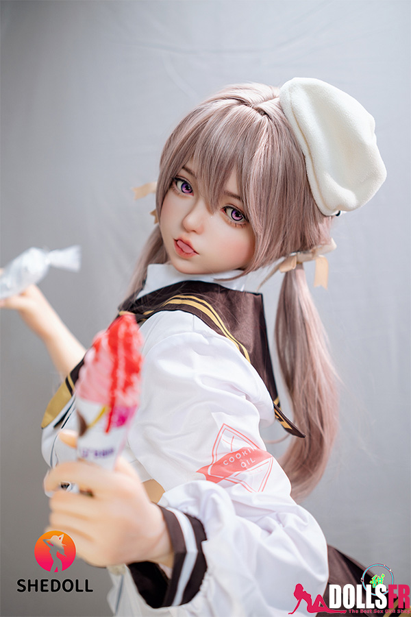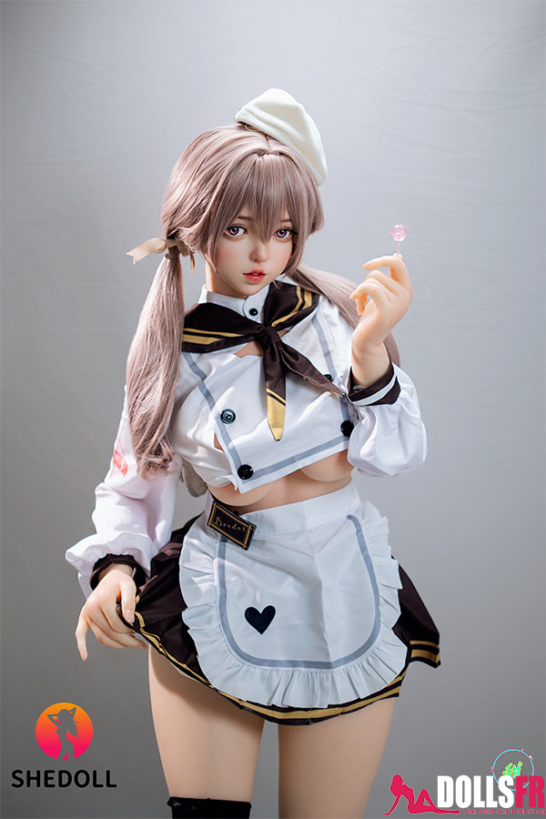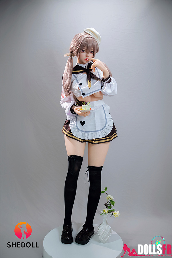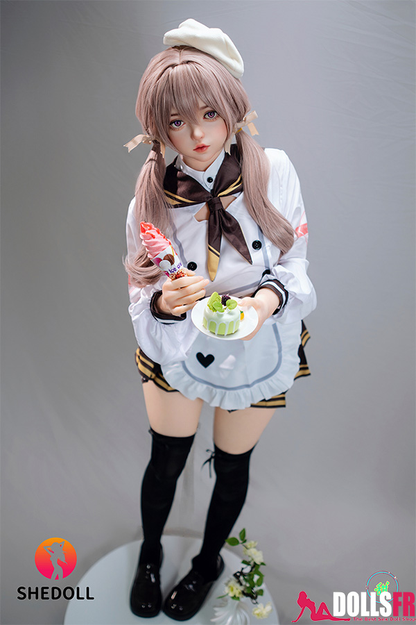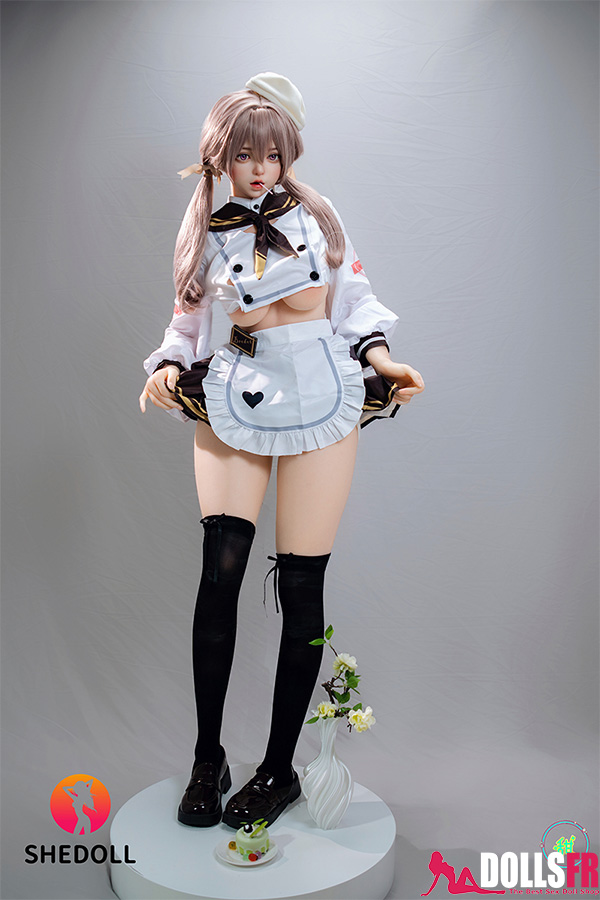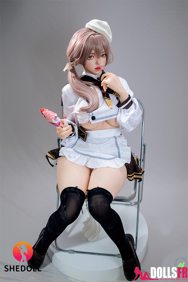 Avec ses longues mèches gris-violet attachées en deux couettes élégantes et son petit béret blanc qui souligne son charme espiègle, cette japanese realdoll attire le regard dès le premier instant. Ses grands yeux violets brillent d’une douceur presque sucrée, tandis que son visage éclaire son allure de poupée raffinée. Elle porte un ensemble original de cuisinière revisité : une courte jupe et une veste noire et blanche qui laissent deviner ses formes généreuses. Sa poitrine voluptueuse et ses cuisses pleines de sensualité sont mises en valeur par des bas noirs qui contrastent avec l’éclat de sa peau claire et souple. Assise à une table, entourée de friandises — sucettes colorées, glaces fondantes et pains dorés —, elle semble sortie d’un univers gourmand et fantaisiste. Fabriquée dans des matériaux haut de gamme, au choix selon vos préférences, cette sexdoll allie réalisme tactile et esthétique séduisante, parfaite pour ceux qui rêvent d’un mélange entre douceur enfantine et séduction assumée.
