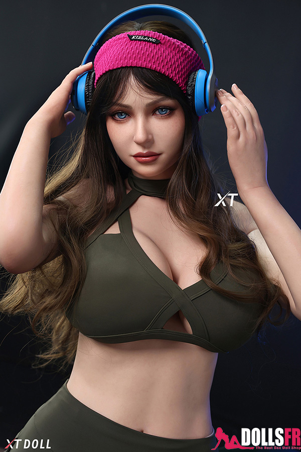 Avec ses longs cheveux noirs lustrés et ses yeux bleus perçants, elle dégage une aura glaciale et mystérieuse qui rappelle une véritable beauté fatale. Son look sportif — serre-tête rose associé à un casque audio bleu, brassière de sport vert foncé et short de yoga assorti — sublime ses courbes élancées et puissantes. Les baskets bleues apportent une touche dynamique, contrastant avec son élégance distante. Cette sexdoll en silicone haut de gamme, mesurant 166 cm avec une poitrine généreuse en H-Cup, incarne à la perfection l’image d’une déesse moderne, fière et inaccessible.